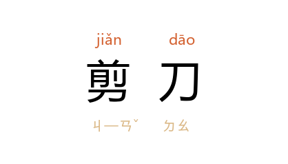 ⒈ 切断布、纸、绳等东西用的铁制用具,两刃交错,可以开合。