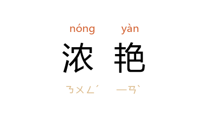 ⒈ 见“浓艳”。亦作“浓艷”。艳丽;华丽。常代指鲜艳的花朵或浓妆艳抹的妇女。