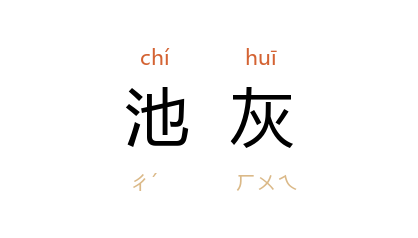 ⒈ 《三辅黄图·池沼》:“武帝初穿池得黑土。帝问东方朔,东方朔曰:'西域胡人知。'乃问胡人,胡人曰:'劫烧之余灰也。'”后因以“池灰”指兵火毁坏后的残迹。