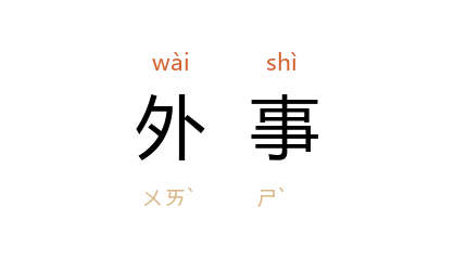 一说谓在外朝听狱之事。参见 清 孙星衍 《尚书古今文注疏》。亦指境外之事。 《左传·文公十三年》:“中行 桓子 曰:‘请復 贾季,能外事,且由旧勋。’”