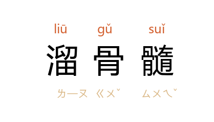 《水浒传·第三二回》:「但凡好汉犯了『溜骨髓』三个字的,好生惹人耻笑。」
