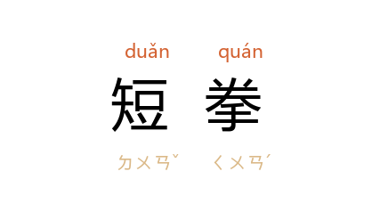 ⒈ 一种拳术,拳法密集,猛起硬落,简明快速,出手较短(区别于“长拳”)