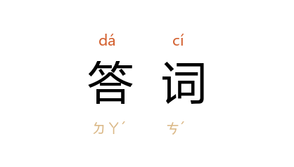 ⒉ 回答的词语。如:「他的答词条理分明,清晰有力,颇受激赏。」