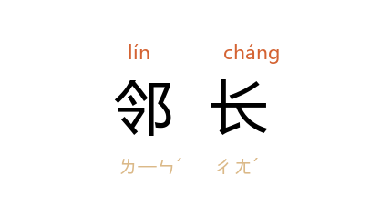 ⒈ 一邻之长。周代每五家为一邻,设邻长一人掌相纠相受,以辅助官治。现代则于各邻设邻长一人,是介于户和村里间的代表,掌一邻的地方自治事务。