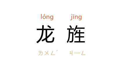 引南朝 宋 谢庄 《侍宴蒜山诗》:“龙旌拂紆景,凤盖起流云。”《敦煌曲子词·望江南》:“每抱沉机扶社稷,一人有庆万家荣,早愿拜龙旌。”明 王守仁 《登阅江楼》诗:“絶顶楼荒旧有名,高皇曾此驻龙旌。”