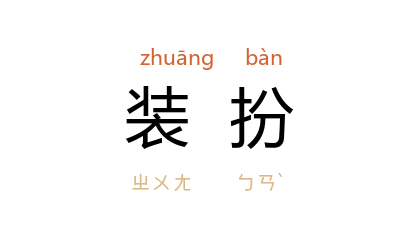 例如:「他在舞台上装扮成各种不同的脚色,诠释各种不同的人物型态。」