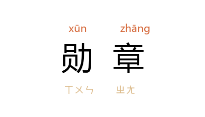 ⒈ 国家授与有功者的荣誉奖章。我国有釆玉大勋章、中山勋章、中正勋章、卿云勋章、景星勋章等不同等别。