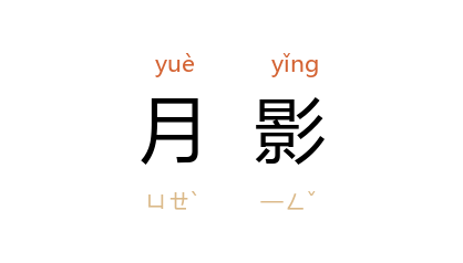 ⒈ 映于水中或隐约于云间的月亮影子。亦指月亮。月光。