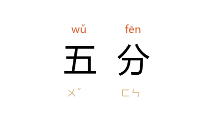 引宋 曾敏行 《独醒杂志》卷六:“芳华楼,前后植梅极多……至开及五分,府坐领监司来燕。”《初刻拍案惊奇》卷三一:“﹝ 王元椿 ﹞心里想道:‘这男女!不会得弓马的……’只有五分防备,把马慢慢的放过来。”