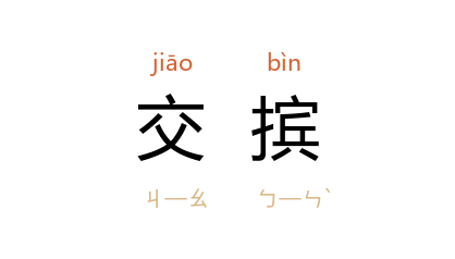 引《周礼·秋官·司仪》:“主君郊劳,交摈,三辞,车逆拜辱,三揖三辞,拜受车送,三还再拜。”郑玄 注:“交摈者,各陈九介,使传辞也。”清 朱大韶 《实事求是斋经义·诸公东面诸侯西面曰朝辨》:“朝位宾主之间,盖杂陈诸侯自相朝之法,不然,诸侯见王,且入门右,安得有交摈而云介几人?当据覲经为正。”