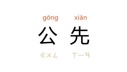 ⒈ 复姓。汉有公先勇。见《隶释·汉国三老袁良碑》。