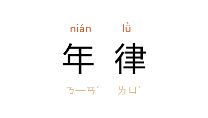 引唐 冯贽 《云仙杂记·乔敷嗜鱼》:“乔敷 嗜鱼而贪,日向渔人贷食。渔人送鱼一斤,以白堊标门记之,后日偿价。年律一终,白堊盈门。”宋 陈与义 《度岭》诗:“年律将穷天地温,两州风气此横分。”