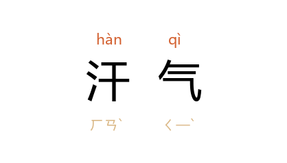 引茅盾 《子夜》十三:“金小妹 抢前一步去开了门, 朱桂英 刚挤进去,就觉得热烘烘一股汗气。”凌力 《星星草》第十五章四:“铿锵的锣鼓骤然一停,麒麟皮掀开,四个汗气蒸腾的小伙子露出笑脸,人群爆发出叫好和鼓掌声。”