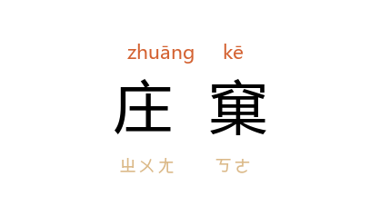 引《元典章·户部五·民田》:“或有庄窠房屋,便行悬掛佛像,安置万岁牌位,致使有理之家,不敢起移,因此词讼尤兴。”元 曾瑞 《端正好·自序》套曲:“盖数椽茅屋,买四角黄牛,租百亩庄窠。”元 无名氏 《货郎旦》第一折:“有时节典了庄科,准了綾罗,铜斗儿家私,恰做了落叶辞柯。”元 乔吉 《雁儿落过得胜令·自适》曲:“禾黍小庄科,篱落棱鷄鹅。”