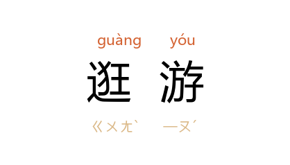 ⒈ 见“逛游”。亦作“逛游”。转游;闲游。