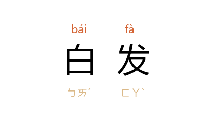 白头发。亦指老年。 《汉书·五行志下之上》:“白髮,衰年之象,体尊性弱,难理易乱。”