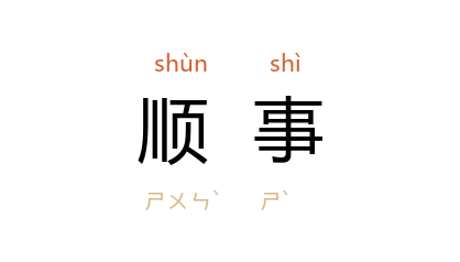 例如:「近一个月来,诸多顺事接踵而至,令他好不开怀。」