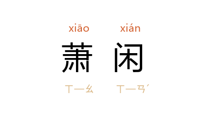 引唐 顾况 《山居即事》诗:“下泊降茅仙,萧闲隐洞天。”宋 林逋 《送思齐上人之宣城》诗:“萧闲水西寺,驻锡莫忘归。”清 龚自珍 《己亥杂诗》之一五三:“亲朋岁月各萧閒,情话缠绵礼数删。”李劼人 《死水微澜》第五部分十三:“满城 是另一个世界,是一个极萧闲而无一点尘俗气息,又到处是画境,到处富有诗情的地方。”