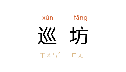 引元 郑廷玉 《金凤钗》第三折:“我出城来,见一人走的慌张,敢是那人?説与巡坊的,与我拿将来!”亦指巡逻街坊、负责京城治安的官吏。 清 邵廷采 《钱币略》:“而五城巡坊,察销钱之姦民,痛其罚,使铜必自外省输京师,而铜裕十五矣。”