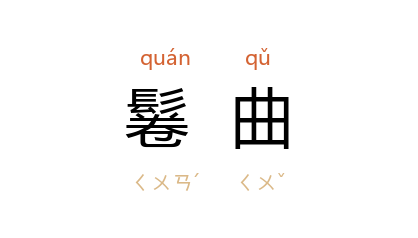引艾青 《花束·怜悯的歌》:“他的头发鬈曲,皮肤黧黑,身体瘦削像一只螳螂。”周立波 《山乡巨变》上三:“她的两条黑浸浸的长长的粗辫子分离在两处,一条鬈曲地躺在枕头边,一条随便地拖在被窝上。”
