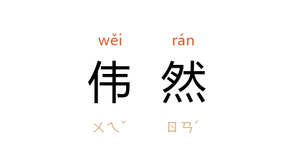 引唐 牛僧孺 《岑顺》:“王神貌伟然,雄姿罕儔。”《新五代史·周臣传·王朴》:“世宗 雅已知 朴,及见其议论伟然,益以为奇。”明 张凤翼 《红拂记·张娘心许》:“看他言慷慨,貌伟然;信翩翩,美少年。”