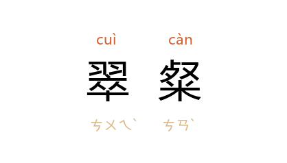 ⒈ 同“萃蔡”。衣服相擦声。《文选·嵇康〈琴赋〉》:“新衣翠粲,缨徽流芳。”一说,色彩鲜明貌。见李周翰注。