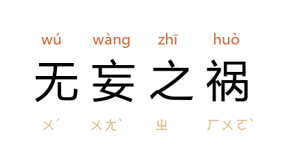 引《战国策·楚策四》:「世有无妄之福,又有无妄之祸。今君处无妄之世,以事无妄之主,安不有无妄之人乎。」《聊斋志异·卷一〇·神女》:「君不幸得无妄之祸,闻之太息。」