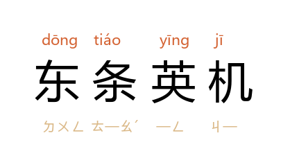 ⒈ (1884-1948)日本首相。出身于军阀家庭。曾任关东军参谋长。卢沟桥事变发生后,率日军侵占华北地区。1941年出任首相,兼陆相、内相,独揽军政大权。同年升为陆军大将,12月发动太平洋战争。日本投降后,自杀未遂。后被定为甲级战犯,处以绞刑。