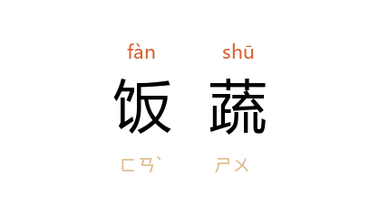 引南朝 宋 傅亮 《故安成太守傅府君铭》:“韦带饭蔬,朝不及夕。”宋 陆游 《山中作》诗:“无酒当饮水,无食当饭蔬。”