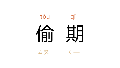 ⒈ 男女暗中幽会或发生不正常的关系。宋·欧阳修〈踏莎行·碧藓回廊〉词:「碧藓回廊,绿杨深院。偷期夜入帘犹卷。」也作「偷情」。
