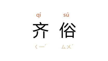 ⒈ 使风俗相一致。《淮南子》有《齐俗训》,高诱题注:“齐,一也。四宇之风,世之众理,皆混其俗,令为一道也,故曰齐俗。”