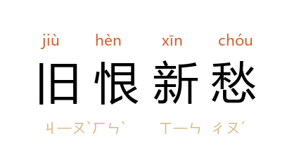 ⒈ 久积心头的愁闷加上新有的怅恨。极言因失意而累积重重愁恨,不得排遣。宋·向滈〈如梦令·旧恨新愁无际〉词:「旧恨新愁无际,近水远山都是。」明·无名氏也作「旧愁新恨」。