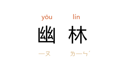 引汉 班固 《西都赋》:“其阳则崇山隐天,幽林穹谷,陆海珍藏,蓝田美玉。”晋 左思 《魏都赋》:“菀以玄武,陪以幽林。”唐 宋之问 《陆浑山庄》诗:“源水看花入,幽林採药行。”清 姚鼐 《复鲁絜非书》:“其得於阴与柔之美者,则其文如升初日、如清风、如云、如霞、如烟、如幽林曲涧。”