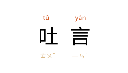 引《孔丛子·答问》:“吾谓圣人之知,必见未形之前,功垂於身后;立教而戾夫弗犯,吐言而辩士不破也。”清 黄鷟来 《述别叙怀送何黼侯之任阶州》诗之四:“赠我龙马篇,吐言如霓虹。”章炳麟 《校文士》:“先 戴 《句股割圜记》,吐言成典,近古之所未有。”