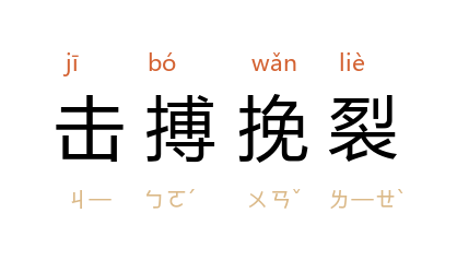 引唐 陆龟蒙 《五歌·水鸟》:“则有觜鈹爪戟劲立直眎者,击搏挽裂图羶腥。”宋 苏轼 《秦始皇帝论》:“昔者生民之初,不知所以养生之具,击搏挽裂,与禽兽争一旦之命,惴惴焉朝不谋夕,忧死之不给,是故巧诈不生,而民无知。”勇立 《论排外不宜有形迹》:“上古之时,人物杂处,其间击搏挽裂,人与禽兽争命者,不知更几何年。”
