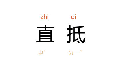 引《史记·蒙恬列传》:“始皇 欲游天下,道 九原,直抵 甘泉。”清 昭槤 《啸亭杂录·缅甸归诚本末》:“由 猛拱、猛养 可捣其 木梳 之老巢,由 木梳 至 阿瓦 又皆陆行,步骑可直抵城下。”沈从文 《从文自传·我所生长的地方》:“小河水流环绕 镇筸 北城下驶,到一百七十里后方汇入 辰河,直抵 洞庭。”
