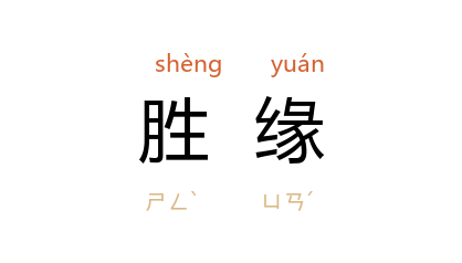 引南朝 梁武帝 《游锺山大爱敬寺》诗:“驾言追善友,迴舆寻胜缘。”唐 王维 《为舜闍黎谢御题大通大照和尚塔额表》:“时若不加兵而贼破,不扰物以人和,緇侣胜缘,苍生厚幸。”宋 秦观 《法云寺长老然香会疏文》:“肆求善友,同结胜缘。”《醒世恒言·独孤生归途闹梦》:“两个都到 遐叔 处贺喜,见此胜缘,各各布施。”