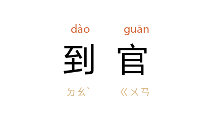 引《后汉书·应奉传》:“永兴 元年,拜 武陵 太守。到官慰纳, 山 等皆悉降散。”三国 魏 吴质 《在元城与魏太子笺》:“即以五日到官。初至承前,未知深浅。”元 范梈 《至宝圭驿》诗:“远辞京闕碧云端,泝尽夷江未到官。”