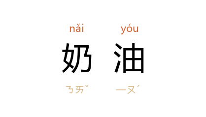 ⒈ 一种从牛奶提炼出来的脂肪性食品。黄色或白色,特具香味。通常用来涂面包,作饼干、蛋糕等。