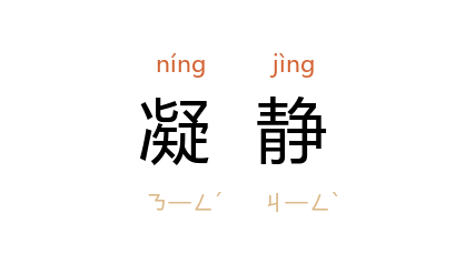 引隋 江总 《摄山栖霞寺碑》:“喜园凝静,岂傲吏之凡游;深谷虚玄,非愚公之俗路。”明 唐顺之 《与应警庵郡守》:“惟古人为学,坚苦磨鍊,忍嗜欲以培天根,久之,则此心凝静,百物皆通。”刘白羽 《昆仑山的太阳·天池》:“是的, 天池 一日,我的心情是凝静的,这是我最珍爱的心情。”韩北屏 《非洲夜会》:“突然,一声尖锐的号叫,划破凝静的夜空。”