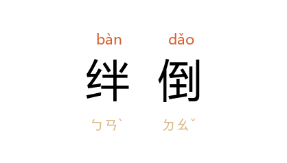 ⒈ 走路时,脚部绊到东西,身体失去重心而跌倒。