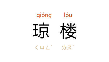 ⒉ 形容华美的建筑物。诗文中有时指仙宫中的楼台。