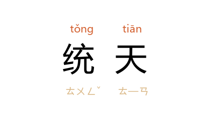 引《易·乾》:“大哉乾元,万物资始,乃统天。”孔颖达 疏:“乃统天者,以其至健而为物始,以此乃能统领於天。”《后汉书·寇荣传》:“陛下统天理物,为万国覆。”《三国志·蜀志·后主传》:“盖统天载物,以咸寧为大,光宅天下,以时雍为盛。”