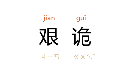 引金 王若虚 《<新唐书>辨中》:“夫鑱肤者针也,黛墨所以为色耳,而云以黛墨鑱肤则不可。舍文身不道,而艰诡若此,其亦劳甚矣乎!”金 王若虚 《<新唐书>文辨》:“然则鼎鐺玉石,亦谓视鼎如鐺,视玉如石矣,无乃太艰诡而不成语乎!”