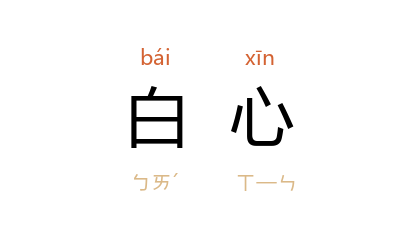引《庄子·天下》:“愿天下之安寧以活民命,人我之养,毕足而止,以此白心。”陆德明 释文引 崔譔 曰:“明白其心也。”鲁迅 《集外集拾遗补编·破恶声论》:“志士英雄,非不祥也,顾蒙幗面而不能白心,则神气恶浊,每感人而令之病。”