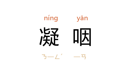 ⒉ 亦作“凝噎”。犹哽咽。哭时不能痛快出声。