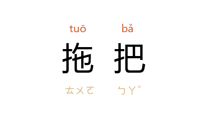 ⒈ 擦洗地板的用具。有长柄,一端系绑著许多布条用以拖擦。