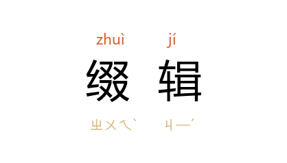 引唐 韩愈 《招扬之罘》诗:“先王遗文章,缀缉实在余。”宋 王明清 《<玉照新志>序》:“因揭寓舍之斗室,屏跡杜门,思索旧闻,凡数十则,缀缉之,名曰《玉照新志》。”鲁迅 《中国小说史略》第五篇:“﹝《拾遗记》﹞或由后人缀辑復成,非其原本歟?”