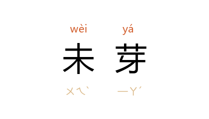 ⒈ 亦作“未牙”。还没发生;还没萌动。