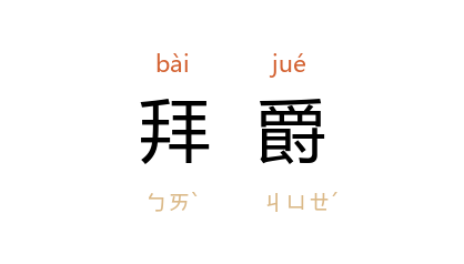 引《史记·秦始皇本纪》:“百姓内粟千石,拜爵一级。”《旧唐书·韦巨源传》:“时序未几,邪逆执权,姦慝者拜爵於私门,忠正者降黜於藩郡。”清 恽敬 《辨微论》:“及遇乱离,则忠主救民、策勋拜爵之心,人人所同。”
